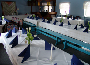Ravintolassa ei ole anniskeluoikeuksia. Eri tilaisuuksia järjestetään tilauksen mukaan kaikilla halutuilla palveluilla.